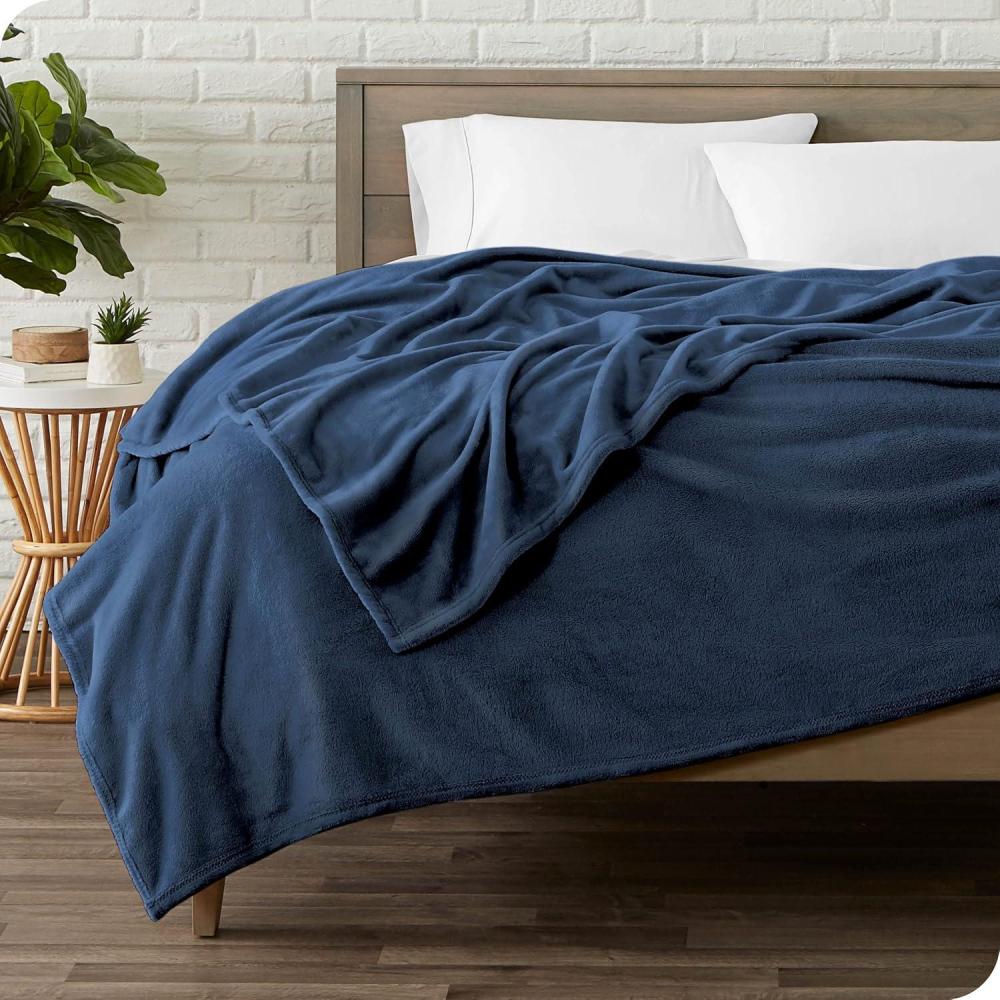Bare Home Flannel Fitted Sheet with Microplush Fleece Blanket Bundle (Queen, Dark Blue)